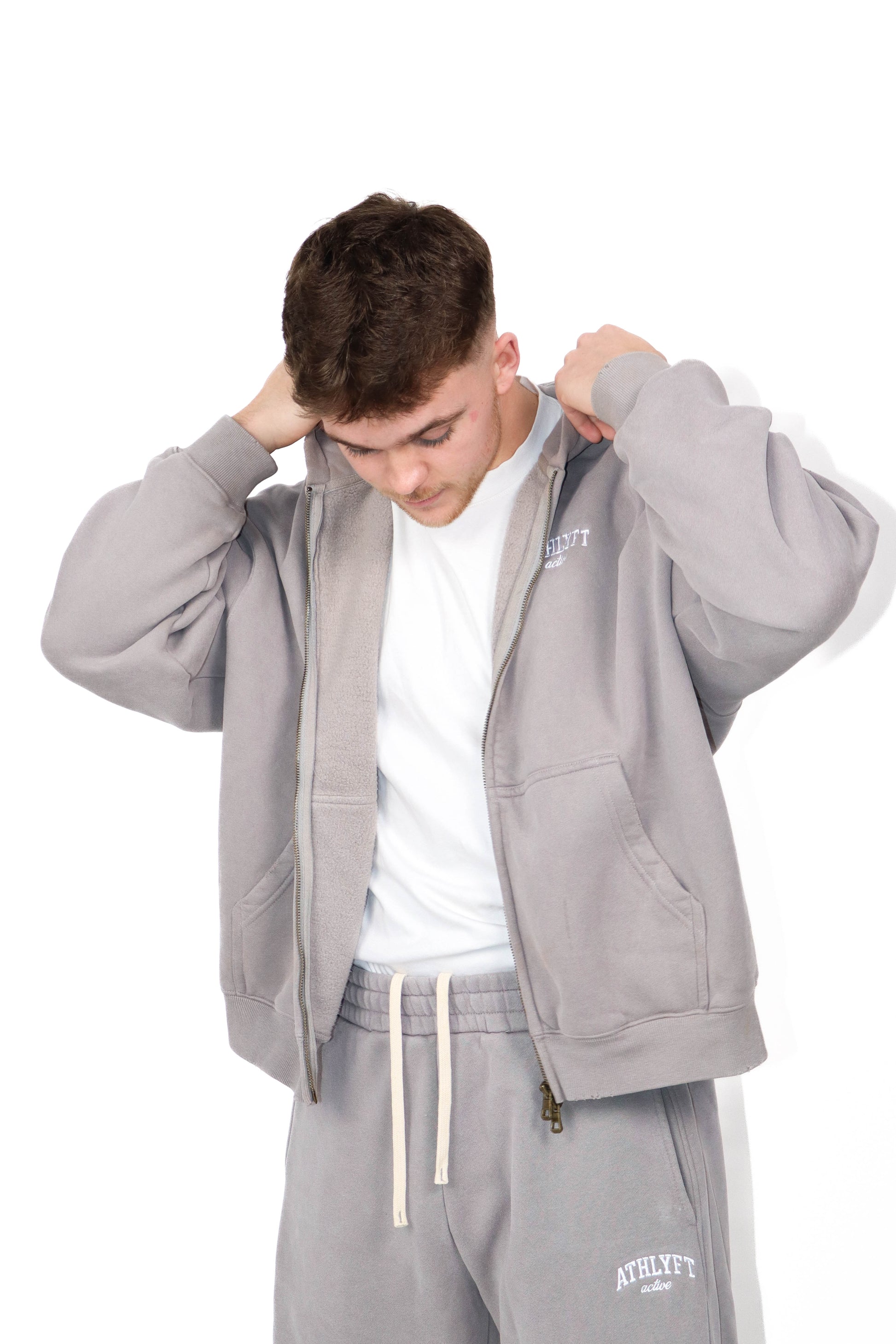 These premium wide-leg joggers feature a balloon cut silhouette with a double-panel leg design for added structure and shape. Crafted with a thick waistband, internal drawstrings, and a fleece-lined interior, they deliver all-day comfort with a washed, vintage feel. Finished with minimal ATHLYFT active white embroidery, designed in a relaxed unisex fit for effortless everyday wear.